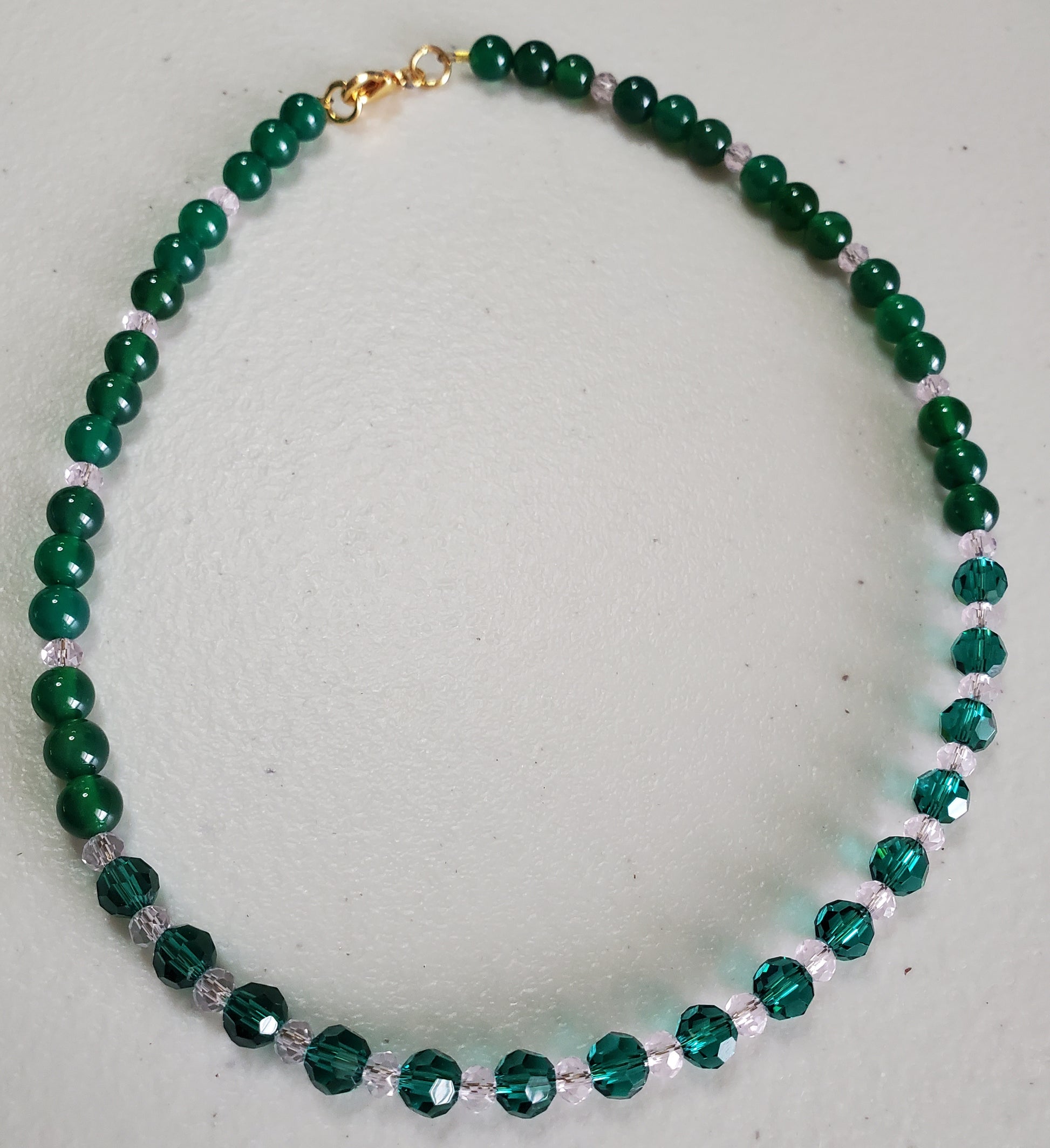 Elevate your style with this handcrafted crystal jewelry set, featuring a stunning emerald and rose crystal necklace paired with a matching bracelet. Inspired by nature’s rich palette, this artisan-designed set blends deep emerald-hued glass beads with radiant rose Austrian crystal accents for a look that’s both timeless and chic.