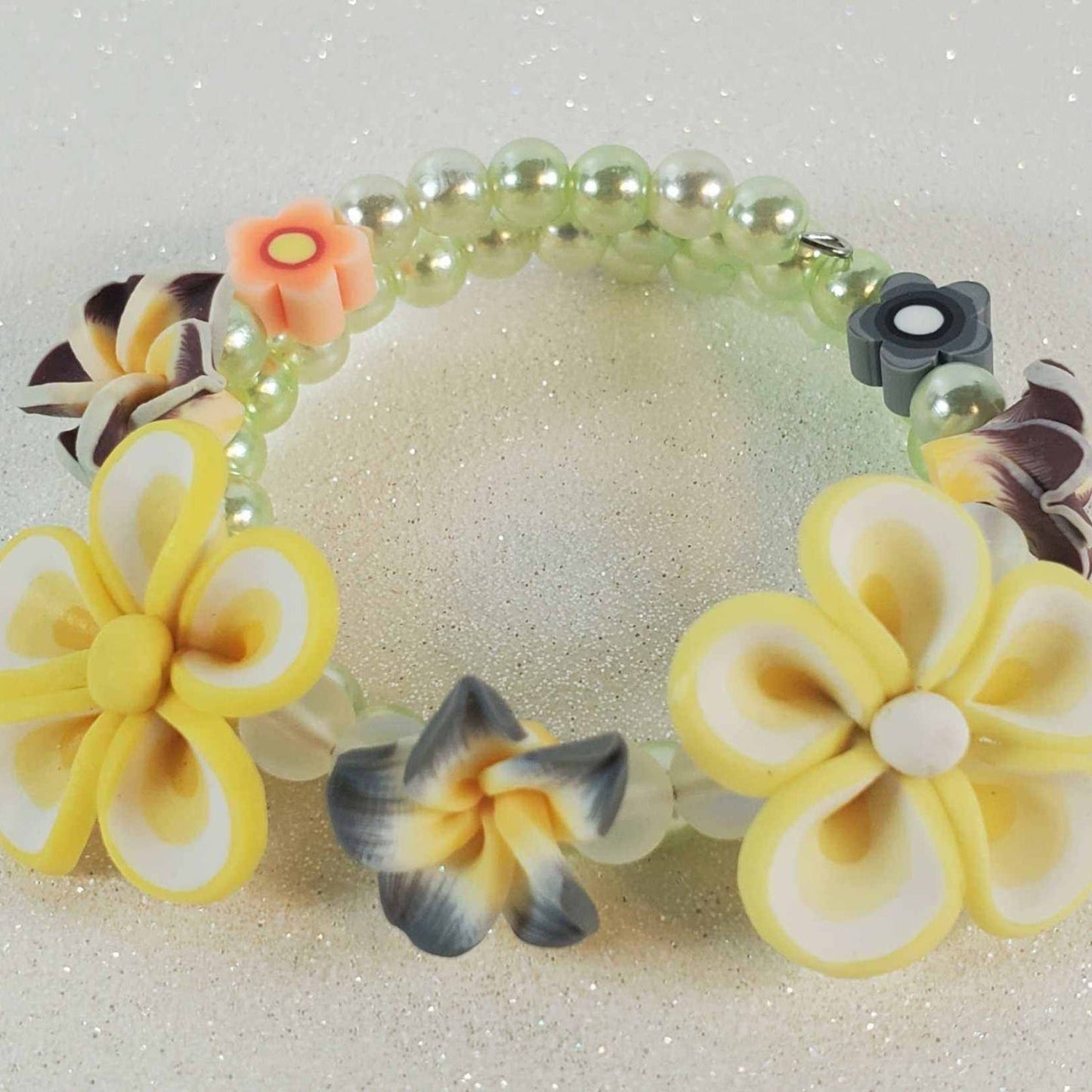 Let your little one’s style blossom with this charming piece of floral jewelry! The Flower Garden Child's Bracelet is bursting with color and creativity, crafted from cheerful polymer flower beads, acrylic pearls, and sparkling pink crystals.