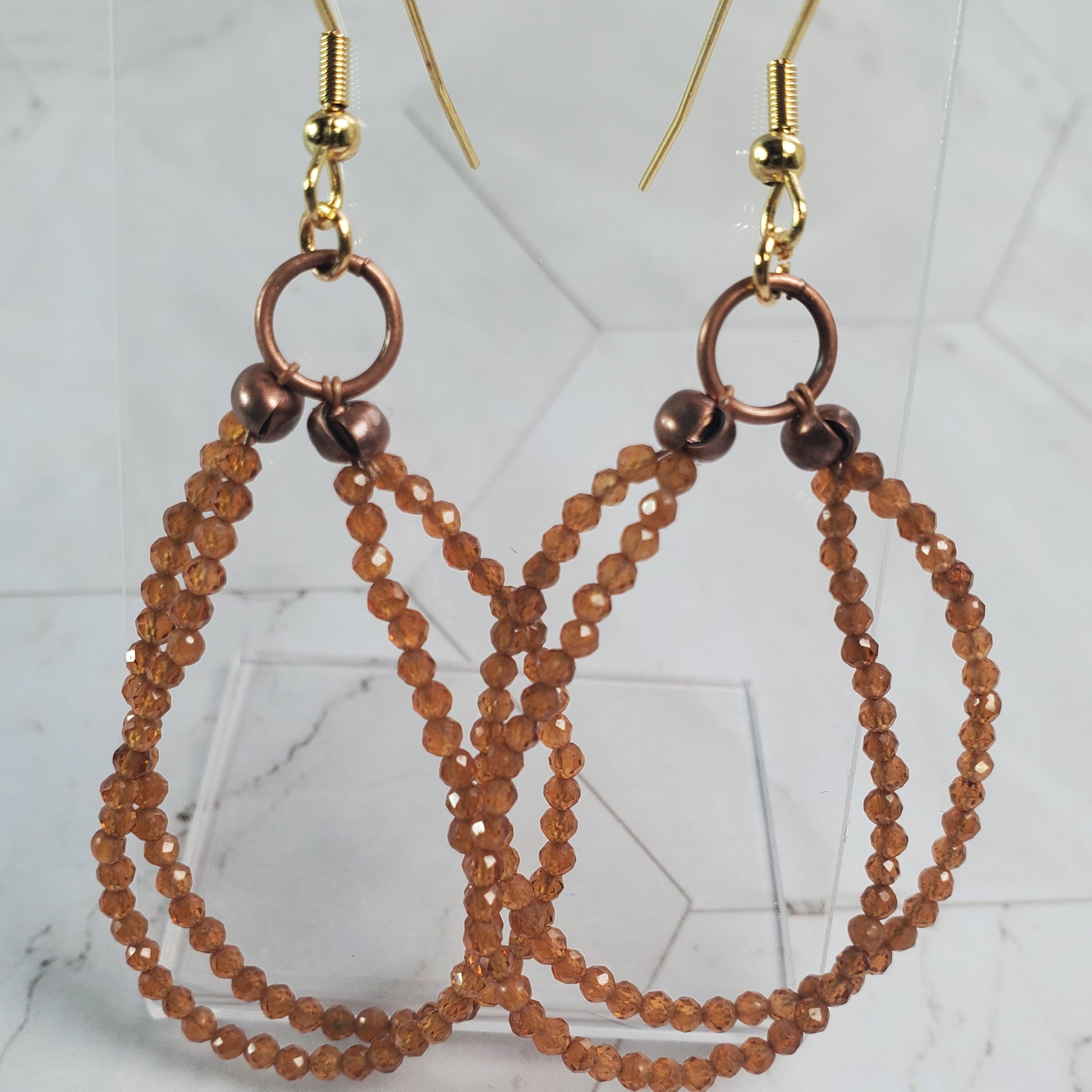 Elevate your everyday elegance with these refined gemstone earrings, beautifully crafted from authentic Hessonite Garnet in a sophisticated double-strand hoop design. The warm, cinnamon-hued tones of the garnet add depth and richness, creating a look that feels both timeless and distinctive.