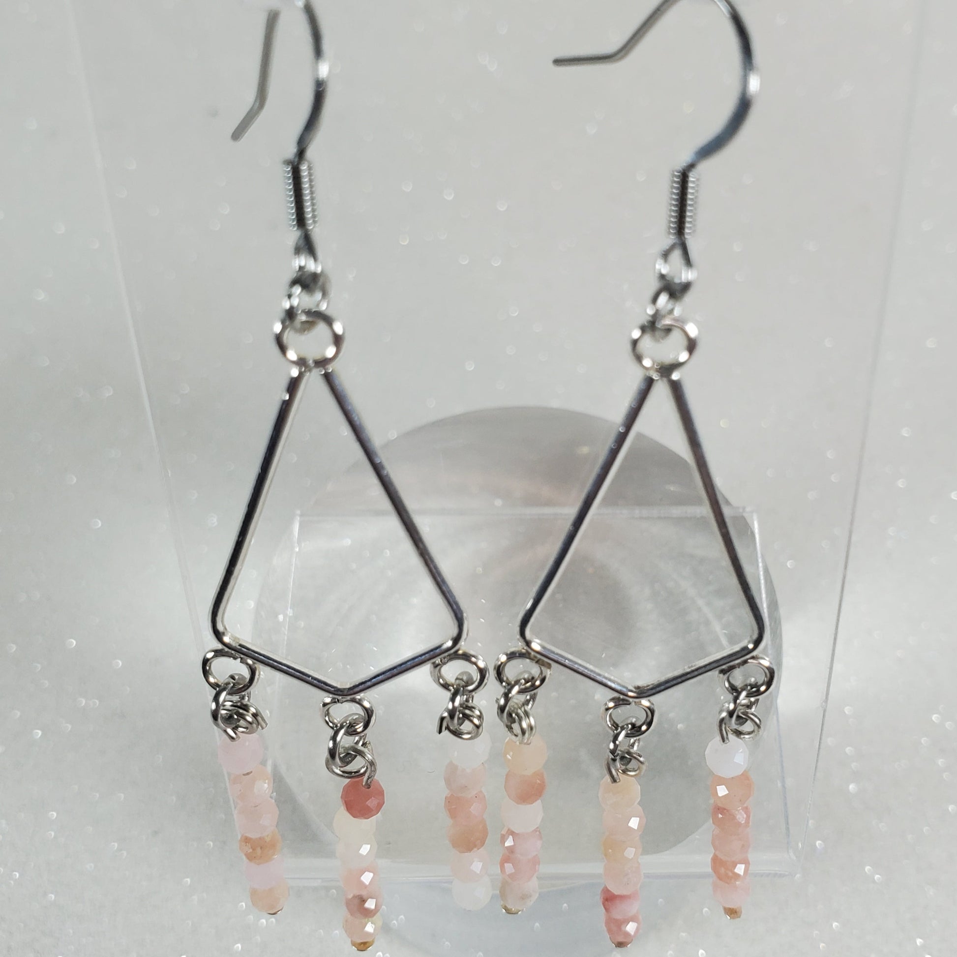 These exquisite gemstone earrings feature genuine 2mm Pink Opal beads, each showcasing soft variations in color and texture that highlight their natural origin. Enhanced with finely crafted silver-plated components, they bring a delicate shimmer that complements the gentle tones of the opal.