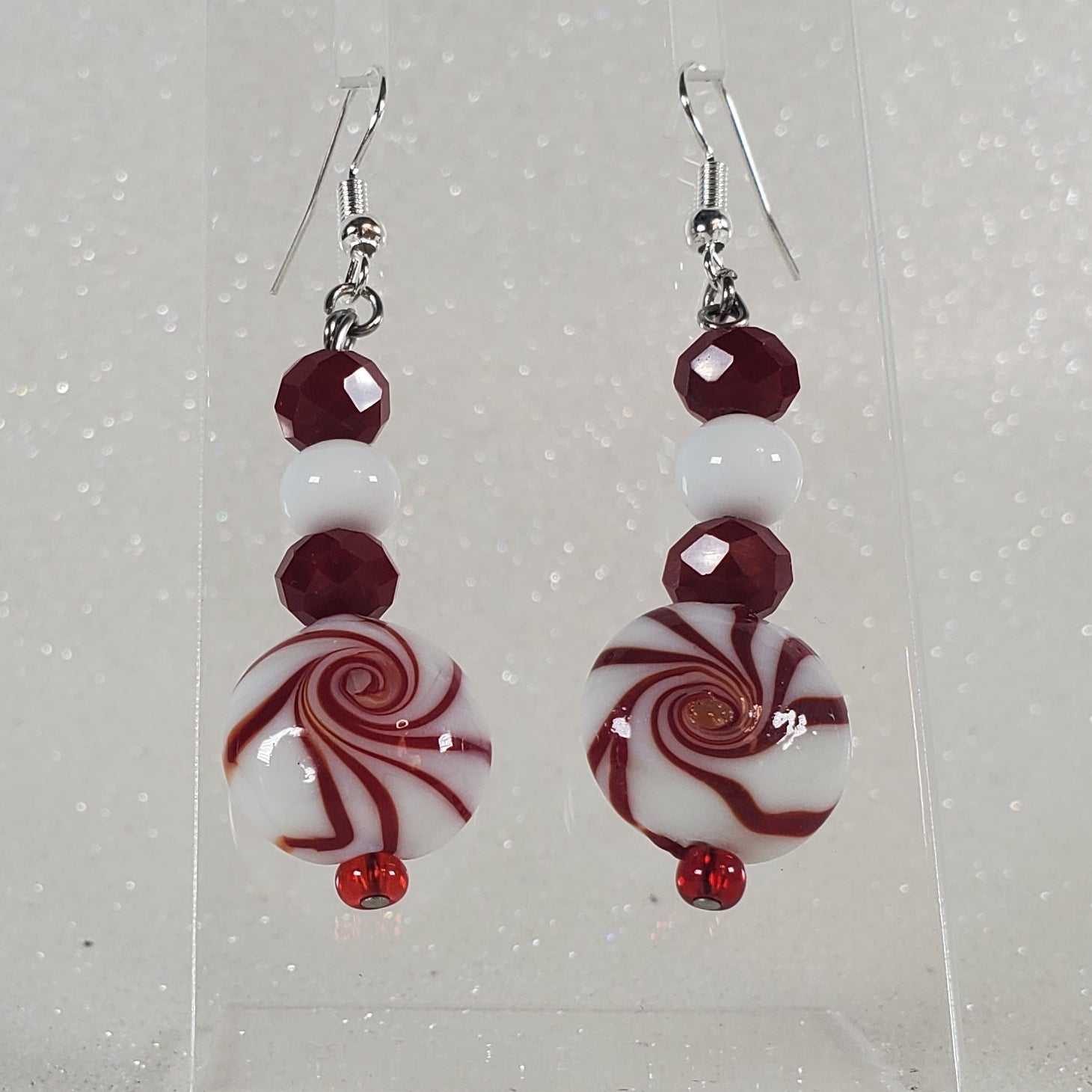 Celebrate the season in style with these holiday earrings, featuring handcrafted peppermint swirl glass beads accented by cheerful red and white tones. Designed with comfort in mind, each pair is made with hypoallergenic French wires, making them ideal for all-day wear.